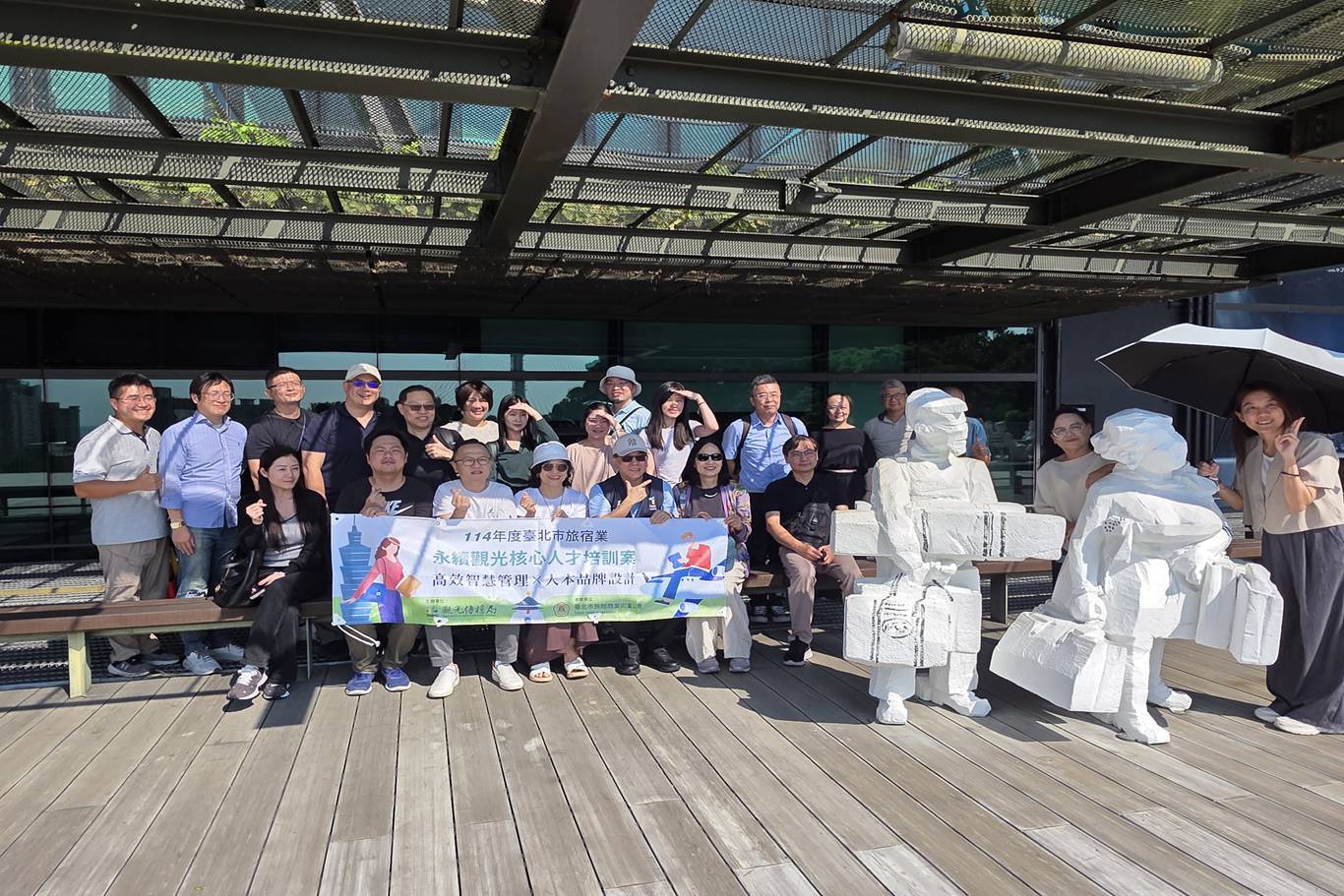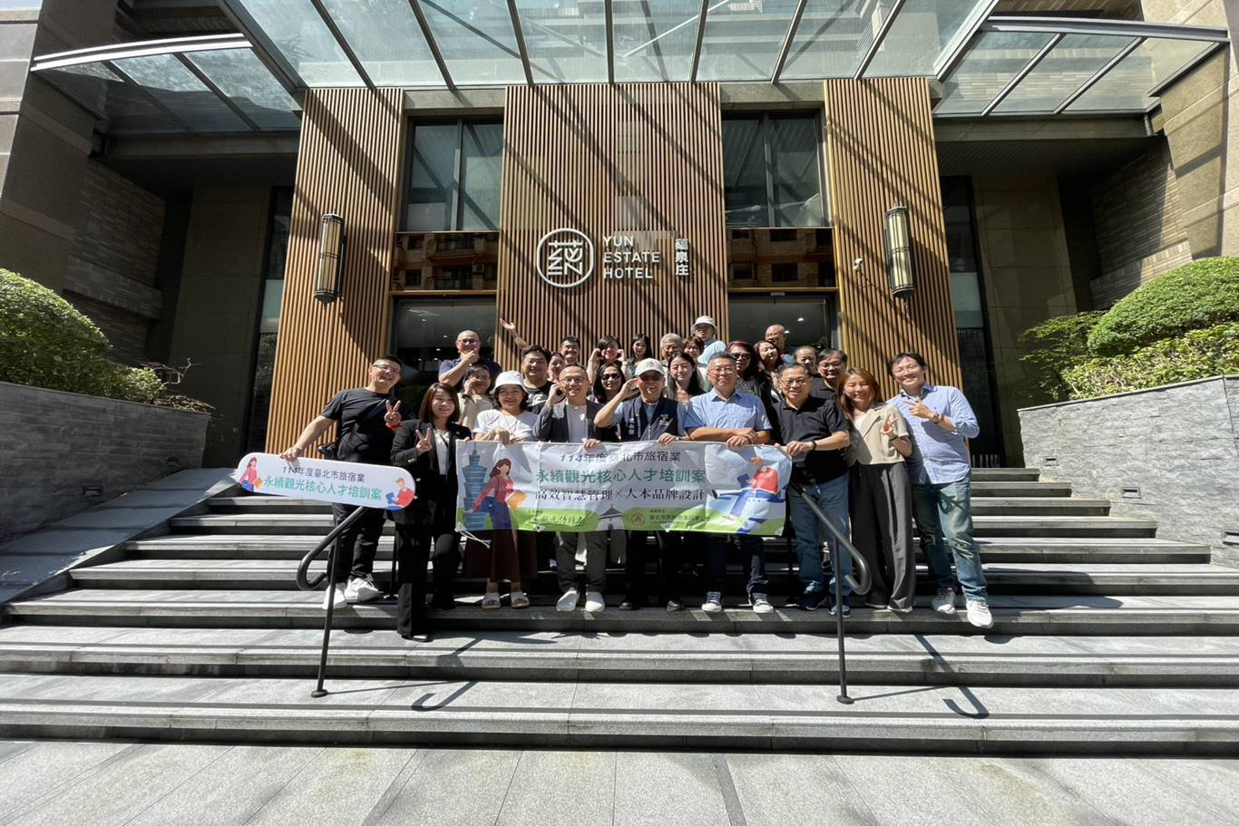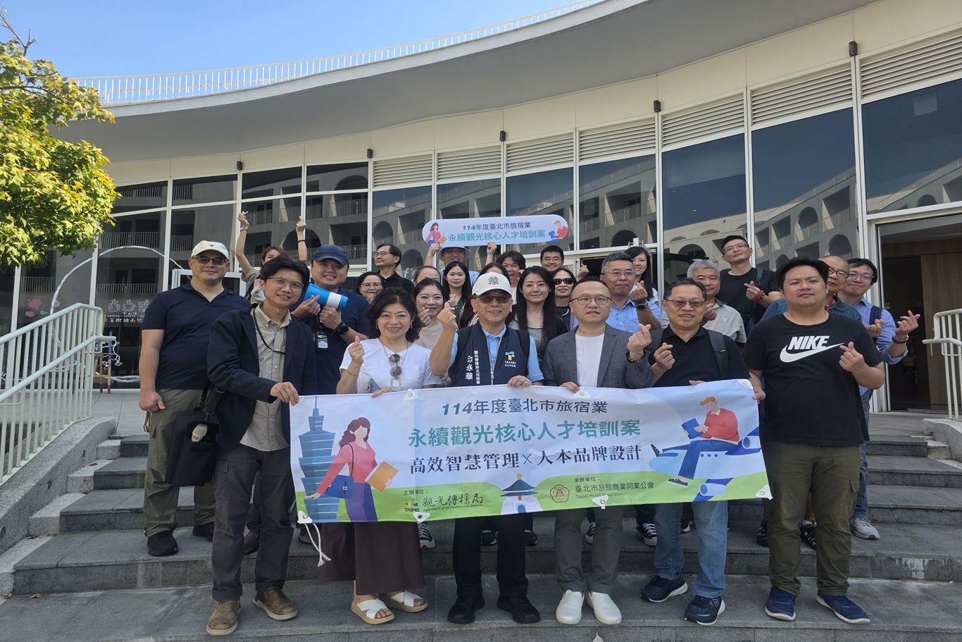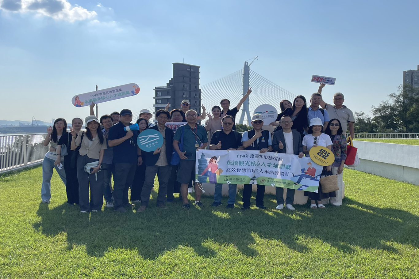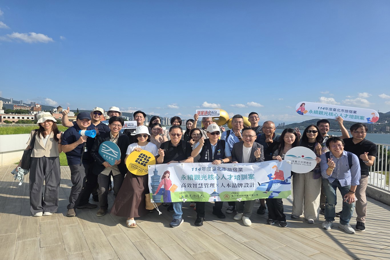 本會趙一任理事長、邱樂芬常務理事、郭懿昌理事及呂濟譯理事共同赴蘊泉庄及淡水將捷金鬱金香酒店出席由本會舉辦的「114年度臺北市旅宿業永續觀光核心人才培訓案」淡水旅館參訪活動。