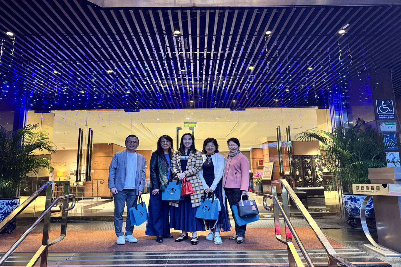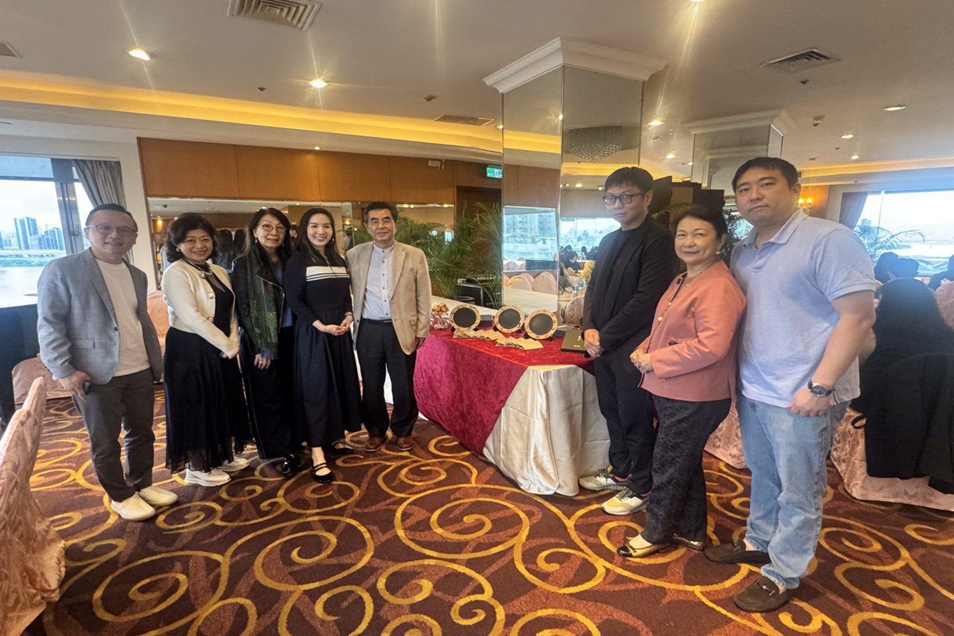 本會趙一任理事長(右2)、邱樂芬常務理事(右3)赴豪景大酒店出席國際觀光飯店人資聯誼會,並與豪景大酒店陳珀玲董事長(中)及侯姿安董事長特助(左3)合影留念。