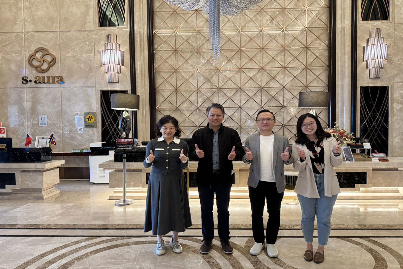 本會趙一任理事長(右2)及邱樂芬常務理事(左1)於香樹花園酒店與臺灣港務公司高雄港務分公司馬公管理處會面交流,會後與鐘偉誠處長(左2)及謝佳蓉助事員(右1)合影留念。