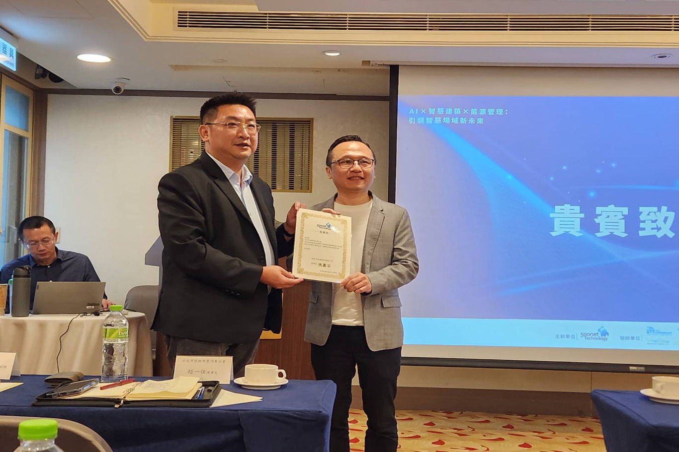 本會趙一任理事長赴長榮冠桂酒店出席由五百戶科技股份有限公司主辦的「AIx智慧建築x能源管理:引領智慧場域新未來」研討會。