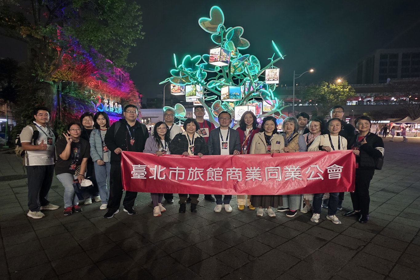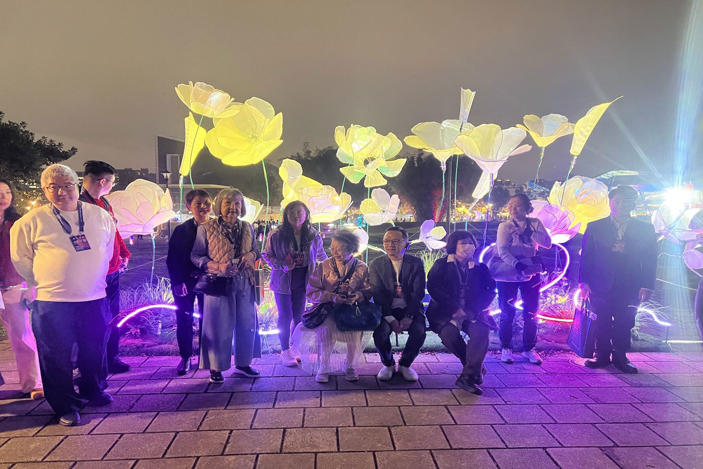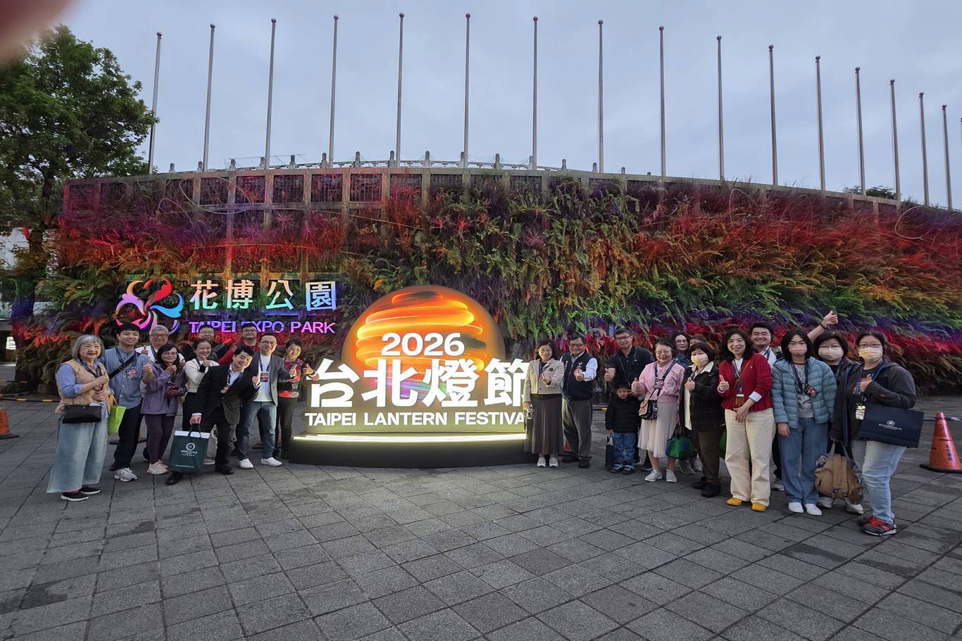 本會趙一任理事長、邱樂芬常務理事、郭碧琴常務理事、蘇玉盆常務理事、陳莉菊理事、吳宗霖理事、郭罡顧問及林煊智顧問赴花博公園圓山園區參加「2026台北燈節花博展區貴賓導覽活動」合影留念。